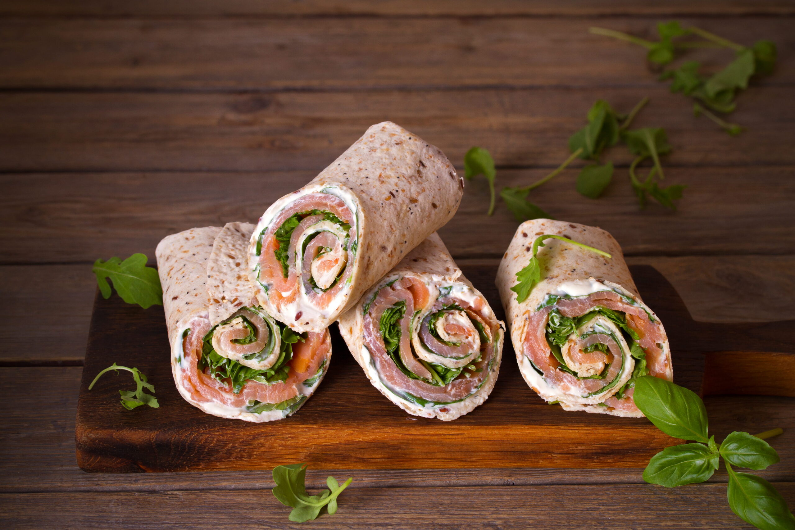 Mascarpone wymieszaj z pastą warzywną Wawrzyniec PRO, dopraw solą i pieprzem. Bazylię pokrój drobno, łososia pokrój w grube paski. Każdą tortille posmaruj pastą z Mascarpone, ułóż na środku łososia i całość posyp bazylią. Zwiń tortille i pokrój na grube plastry.